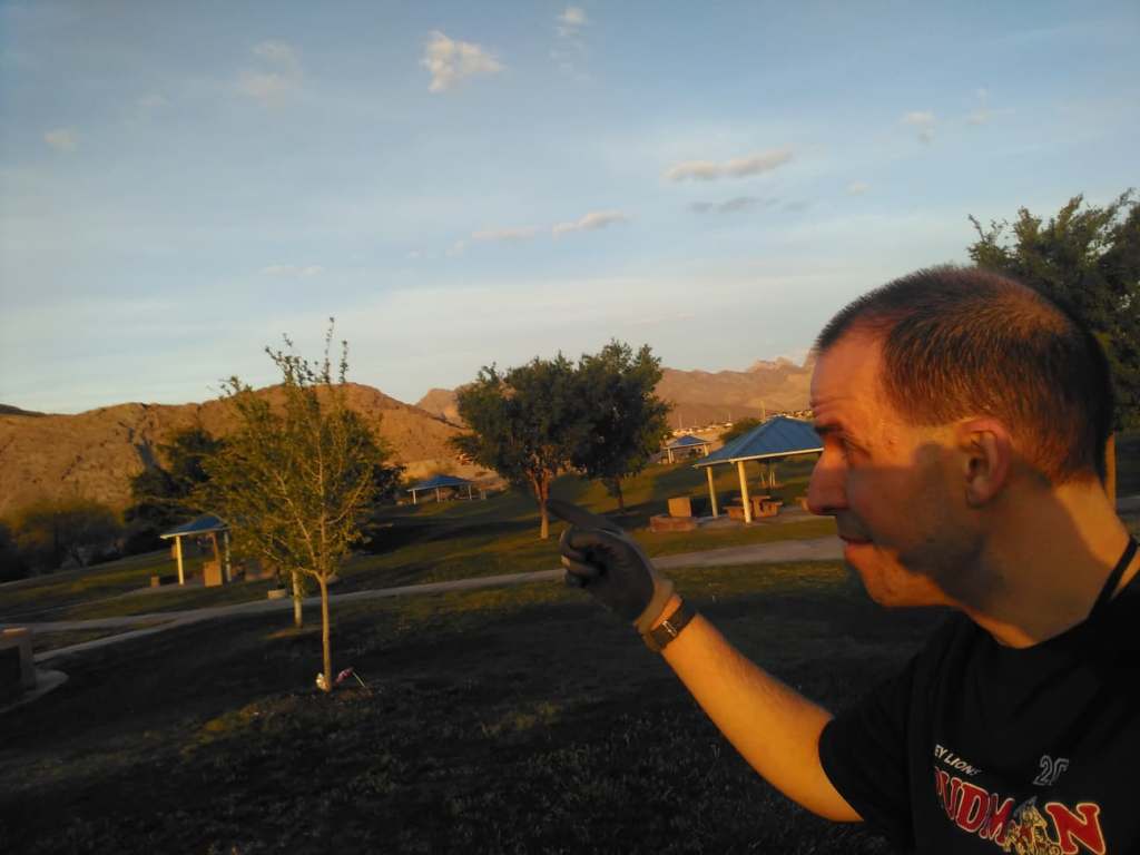 (return to starting corner) - 40x Single arm standing rows, MoT: rifle carry